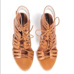 Matt Bernson Miro Heel Sandal Tan Leather Lace-up Front Closure size 9