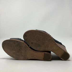 Matt Bernson Pia Woven Leather Wedges in Black. Effortless Matt Bernson wedges featuring a woven vamp. Stacked wedge and leather sole.