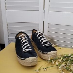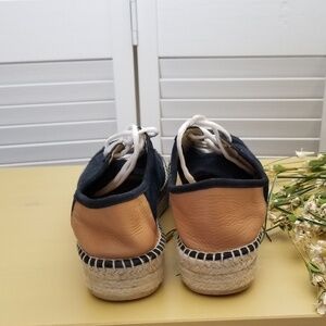 These Spanish-made beauties are crafted with a perforated suede upper and natural espadrille rope detail. The main point of difference between the Matt Bernson version and any other is the leather covered insole with 5mm of memory foam underneath. Comfortable and no more rope burn from your espadrilles! Suede upper with grosgrain laces. 1" flat-form. Lined in leather. Signature memory foam insole with leather footbed. Gum rubber outsole. Good condition.