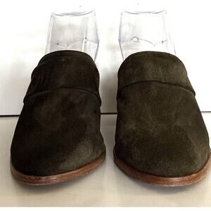 Matt Bernson Sz 6 1/2 Olive Green Suede Strap block heel mules