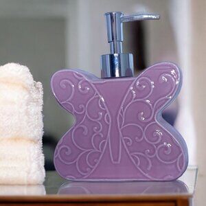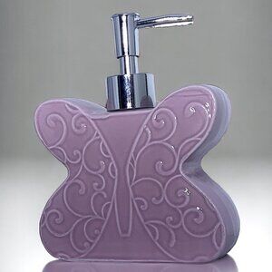This Ceramic Butterfly Soap or Lotion Dispenser is great cheerful addition for any room Kitchen, Bath, Office Study Craft Room Laundry Room Embossed Raised Design on both Sides Glazed Ceramic with Silver Tone Pump Pink