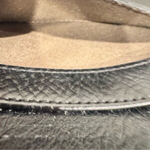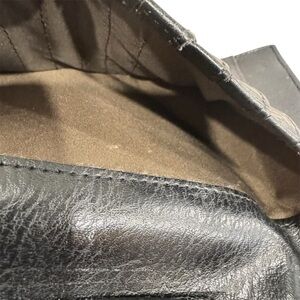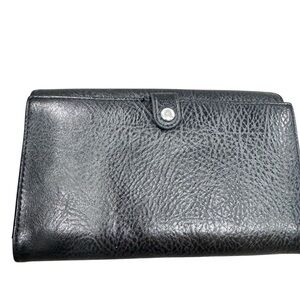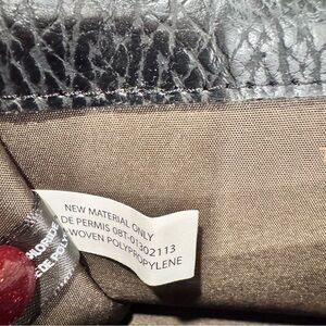 Interior lining made from recycled plastic bottles. Front snap closure. Front flap coin pocket with snap closure. 14 card slots. Two bill compartment. Missing coin zipper compartment. Good condition