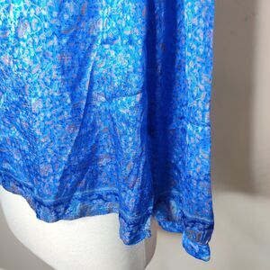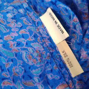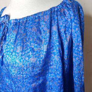Matta blue floral 100% silk long sleeve tie neckline blouse. Size XS. (18814)