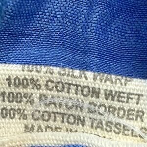 Threads of cotton and silk are hand spun and then set and woven on looms, resulting in a luxurious and lightweight fabric. It takes a few days to weave one piece and when it's done, an average of 320 tassels are tied by hand on all four sides.