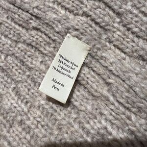 Yarn is 70% Baby Alpaca 23% Recycled Polyamide 7% Merino Wool