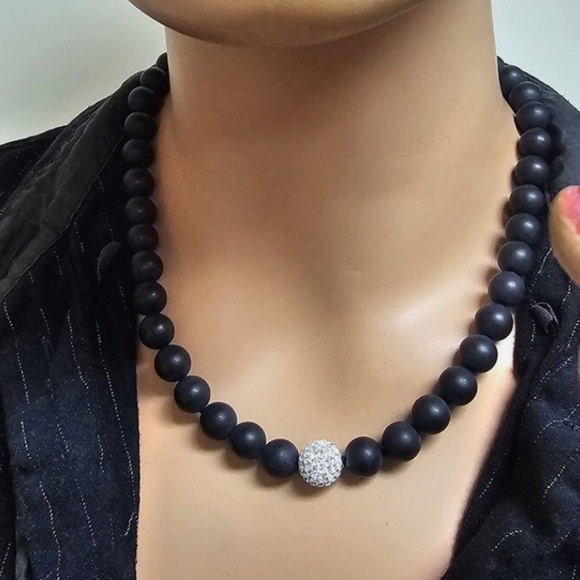 Bracelet – A flexible stretch design crafted with smooth matte black beads, accented by a dazzling crystal ball centerpiece that catches the light beautifully.