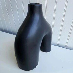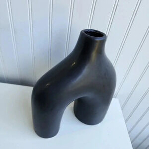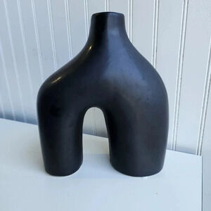 Matte Black Ceramic Table Vase Décor Minimalist Modern Abstract 10.5"H × 9" W