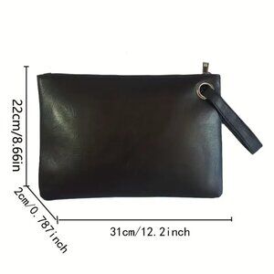When your wristlet is too small and your handbag is too big, this stylish matte black vegan leather clutch bag is the perfect accessory for women seeking elegance and versatility. Designed with a secure zipper closure and a comfortable wrist strap, it is ideal for both evening outings and everyday use.