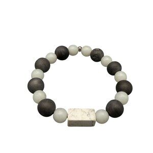 Matte Black & White Beaded Stretch Bracelet Rectangular Stone Modernlook