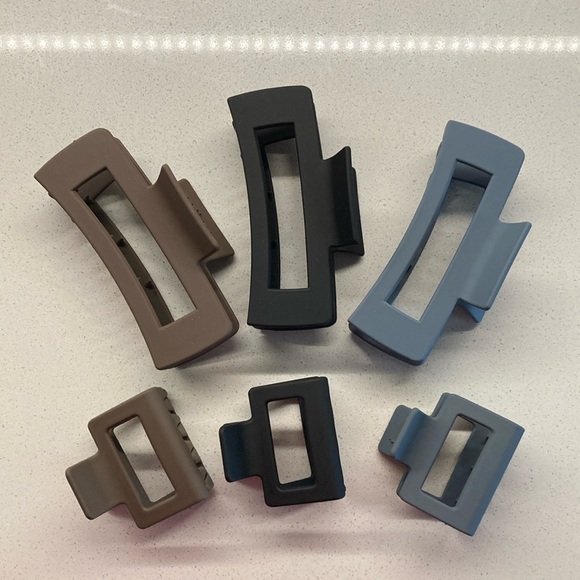 Set of six (6) medium and large claw clips. The colors are brown, black, and gray-blue.