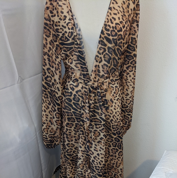 Matte Collection - Achilles Sheer Cover Up. Long and flowing in a Cheetah Animal print. The vibe is one of dominance and seduction. Get into it ladies!