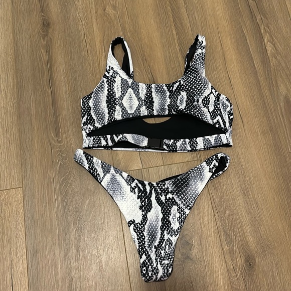 Two-piece snakeskin swimsuit. Size medium.