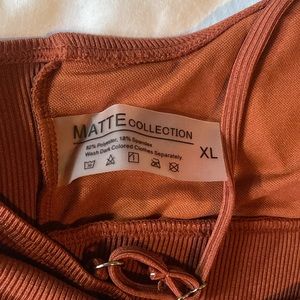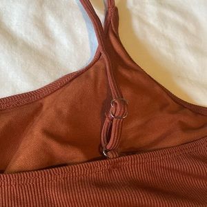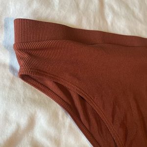 Gently used condition. Rust brown ribbed fabric bikini set. Includes top and bottom. Both size XL.