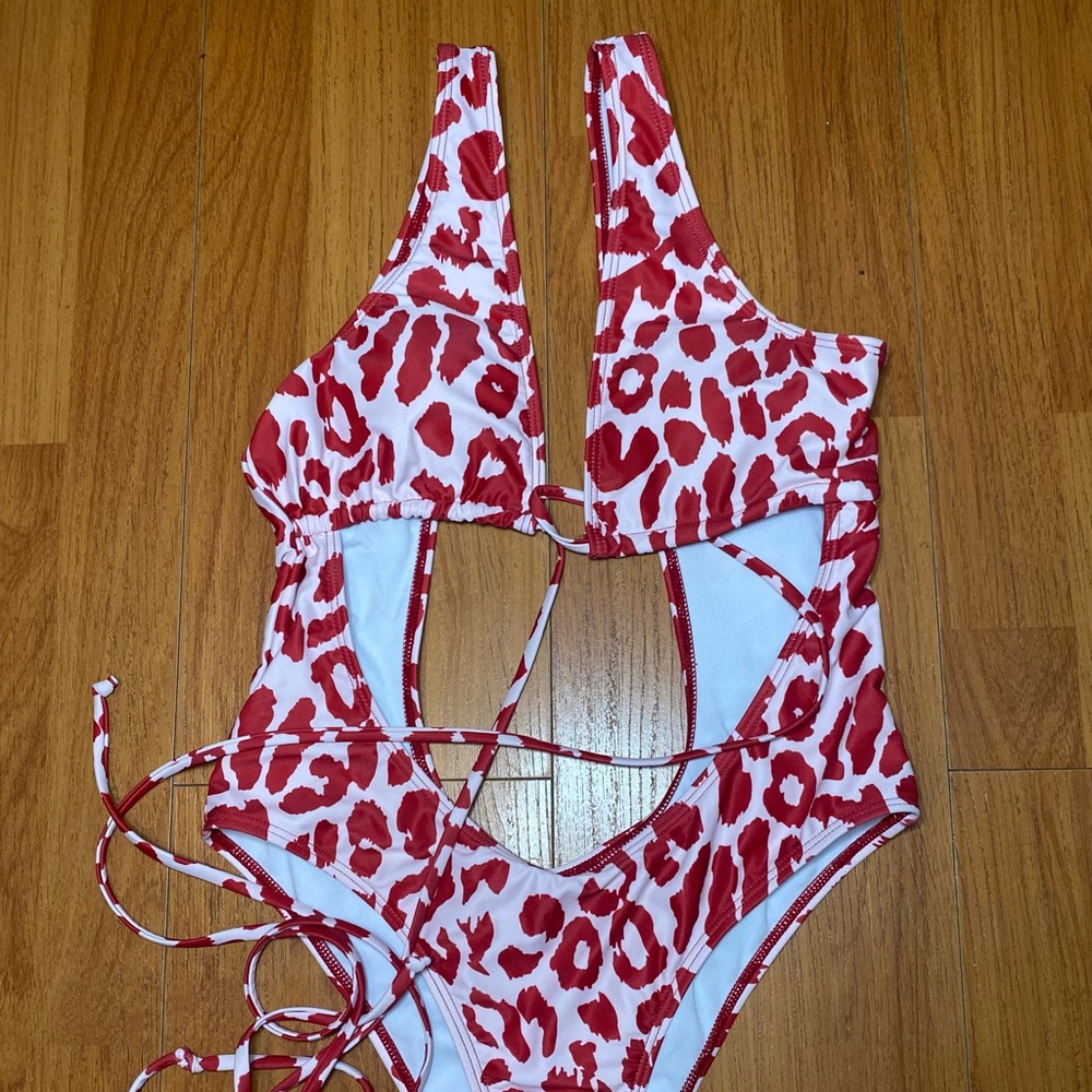 Red cheetah print one piece tie around bathing suit. Never worn no tags