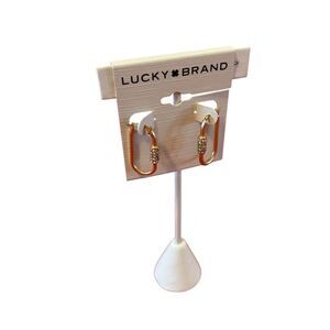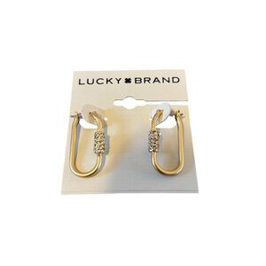 Matte Gold Toned Pave Crystal Elongated Hoop Earrings
