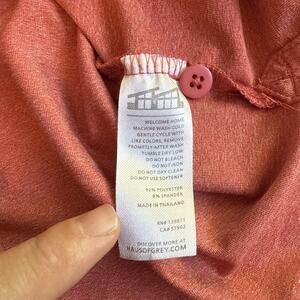 The product is a men's XL red short sleeve polo shirt in matte grey with a collared neckline and button closure. It is made of a blend of polyester and spandex, making it lightweight and easy to care for. The shirt is suitable for travel and casual occasions, and features a solid pattern with accents of button and logo details. With a spread collar style and regular fit, this polo shirt is designed for all seasons and can be worn for activities like golf, rugby, walking, or school. The brand, Matte Grey, offers a classic and modern look with a touch of designer flair.