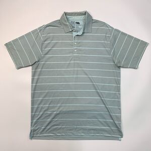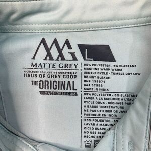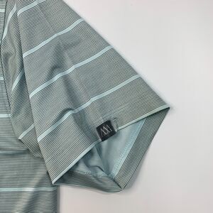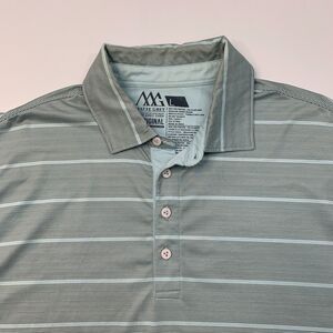 MATTE GREY POLO SHIRT MENS L LARGE STRIPED STRETCH SIDE SEAM SLIT SHORT SLEEVE