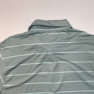 Matte Grey Polo Shirt Mens L Large Striped Stretch Side Seam Slit Short Sleeve