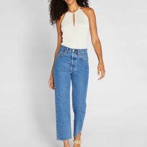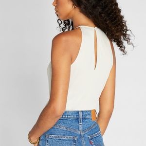 A keyhole cutout and halter neckline take a simple matte jersey tank from easy to elegant.