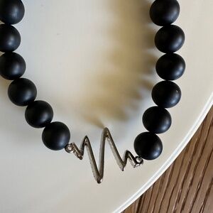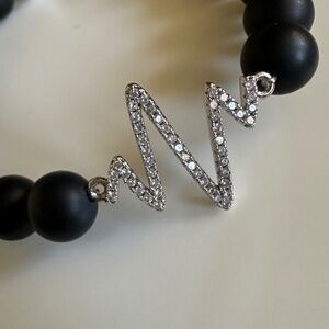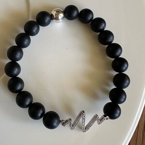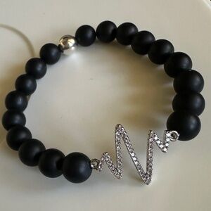 Matte Onyx Stretch Bracelet w/ Silver Pave Heartbeat Connector
