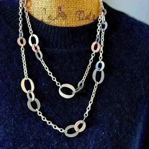 Matte silver tone & matte black necklace. Approx. 48” long . Can be worn single or doubled . Length can be adjusted . Great every day piece