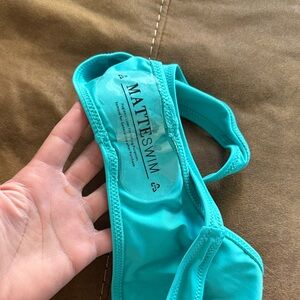 Stylish turquoise bikini set by Matte Swim. Includes a triangle top and matching bottoms. Perfect for the beach or pool. Never worn