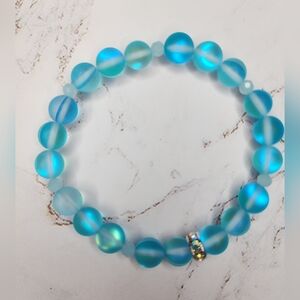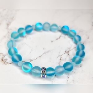Matte teal Mermaid bead stretch bracelet rhinestone Beautiful Design FreeSpirit