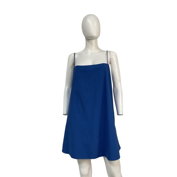 Matteau Organic Blue Cotton-Poplin Mini Dress Size 4: a relaxed, shift silhouette and rests on spaghetti straps.
