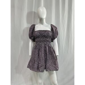 Matteau 'Shirred' Blue Peasant Mini Dress Size 3