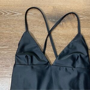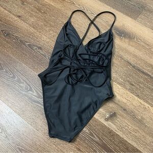 Matteau womens black wrap plunge one piece swimsuit US 8