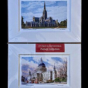 Matted prints from original art work. New in original shrink wrat. St Pauls cathedra by Denis Pannett and Salisbury cathedral by A.R. Quinton. Both are professionally matted to fit a 8" x 6" frame. Print size on both is 5" x 3" Prints are much sharper and more colorful than my pictures show. Interested, make an offer. From a smoke and pet hair free home. Fast shipping.