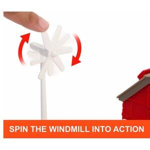 Detachable horse, goat and cow figures and 2 hay bales enhance the realism