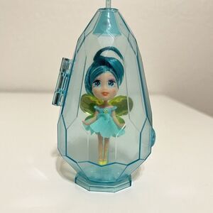 Mattel Barbie Fairytopia Jewel Necklace Ring Twinkle Fairy Blue 2004 NO NECKLACE. Twinkle Fairy doll, measures approx 2", 2.5" if you include her hair. The chain for the necklace is missing, so this is just the jewel case that can be worn as a necklace charm along with Twinkle Fairy that can we worn as a ring. The date on the bottom of the jewel indicates 2004. Normal wear and tear and some scratches to the plastic. A great piece. Please see the pictures.