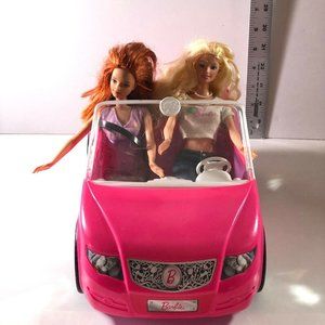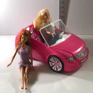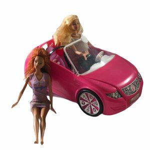 Mattel Barbie Pink Convertible Car 2 Barbie Dolls