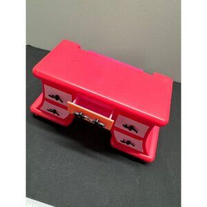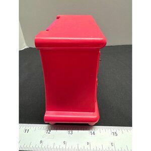 This charming miniature desk adds a nostalgic touch to any dollhouse or playset. Its vibrant red and pink design, complete with decorative drawer handles, provides a delightful aesthetic. Enhance your miniature collection with this unique piece, offering both style and functionality for imaginative play.