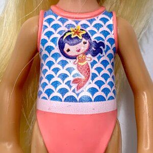 Mattel Chelsea 2016 Blonde Doll Mermaid Swimsuit 5.5" Logo Barbie Beach Club