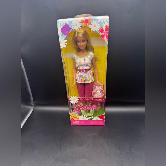 The product is a Mattel Easter Flowers Barbie Doll Special Edition that is in near mint condition. This single unit doll is part of the Barbie franchise and is a store exclusive. It includes a Barbie doll in a Caucasian ethnicity, with a fashion and beauty theme. This 11.5-inch girl doll is recommended for ages 3 and up and comes in its original packaging from Mattel. Perfect for collectors or as a special edition Easter gift, this Barbie doll is sure to bring joy to any child or adult fan of the iconic franchise.
