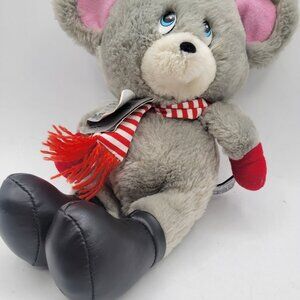 Mattel Emotions Vintage Christmas Gray Mouse Plush Red Scarf Black Boots Stuffed