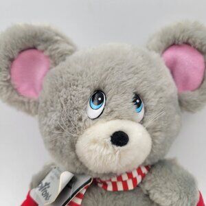Mattel Emotions Vintage Christmas Gray Mouse Plush Red Scarf Black Boots Red Mittens Stuffed Animal with Whiskers