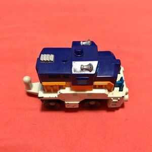 Mattel Geo Tracks with three parts. 1 locomotive car that you can move back and forth with your hand and the accompanied freight cars that you can put small things in and bring it to your destination. The cars have couplings for you to connect the freight cars to the locomotive. There are obvious wear and tear marks on them. I have had them for over 20+ years. View last photos for the wear and tear markings.