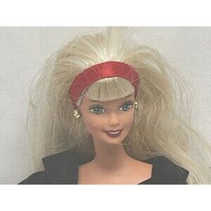 Mattel Holiday 1976 Barbie in Black Velor With Plaid Dress Missing Shoes