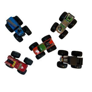 This Mattel Hot Wheels Monster Trucks Sriracha, Jeep, Baja Buster, Backdraft, Skull Lot 5 is a multi-colored, die cast, rubber, and plastic toy set. Perfect for collectors and kids alike.