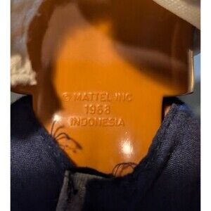 The Mattel Ken Doll from 1968 with brown hair is a vintage collectible from the Barbie franchise. This 12-inch fashion doll is part of the Barbie Collector product line and features a wavy hair style, blue eyes, and a light complexion. Made in Indonesia, this original piece includes the doll itself, and 1 outfit -shoes, making it a sought-after item for collectors of vintage Barbie dolls.