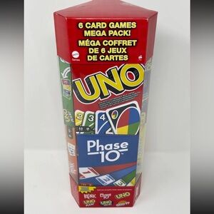 Mattel UNO Mega Pack, Flip!, Ono 99, Flex!, Phase 10, Blink, 6 Card Games Complete Game