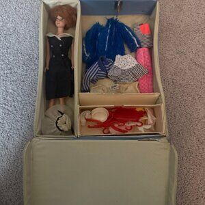 Doll is in good condition. The clothes has aging and some spotting from use over the years. The case is in fair condition, multiple issues including broker handle, warping, and some issues with the plastic itself. In general this doll and accessories have been played with, so expect minor issues and not perfection.