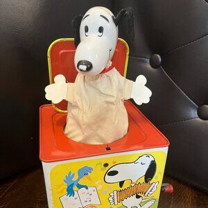 Mattel Vintage 1966 Snoopy Peanuts Jack in the Box Tin Toy-WORKS