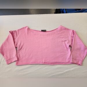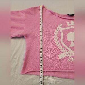 Mattel Womens Barbie Pink Off-Shoulder Cropped Oversized Sweatshirt Top sz MD