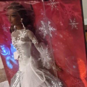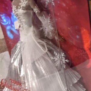 Wears a beautiful sparkling glitter detailed gown that reflects