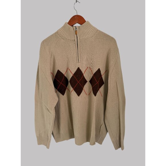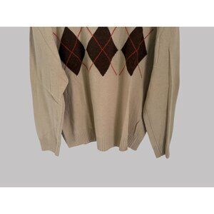 Matteo Volpi Beige Argyle Pattern Half-Zip Sweater M Wool & Cashmere Blend Unise