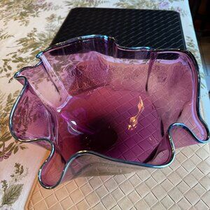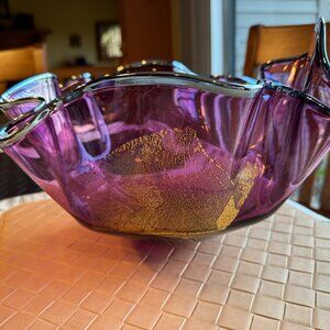 Matthew Buechner Thames Glass Amethyst Bowl with Gold & Silver Signed Rare 1997